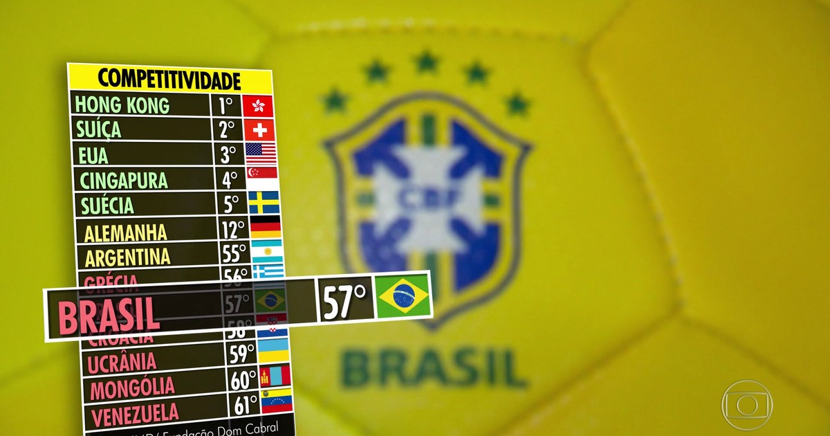 O Brasil perdeu espaço em ranking mundial de competitividade pelo sexto ano seguido, e caiu da 56ª para a 57ª posição em uma lista com 61 países. O Relatório Global de Competitividade foi divulgado pelo Instituto Internacional de Desenvolvimento de Gestão (IMD, na sigla em inglês) em parceria com a Fundação Dom Cabral.