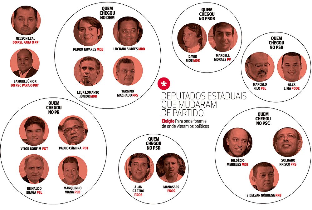 De todas as 19 mudanças, 15 ocorreram na reta final da janela partidária, entre as últimas quinta e sexta-feira. Dentre elas, sete não eram esperadas antes da abertura da janela partidária. Prisco e Targino, por exemplo. Os parlamentares deixaram o PPS após a mudança no comando estadual da legenda. Já Vitor Bonfim deixou o PDT por insatisfações internas na reta final, e ainda levou com ele Paulo Câmera.