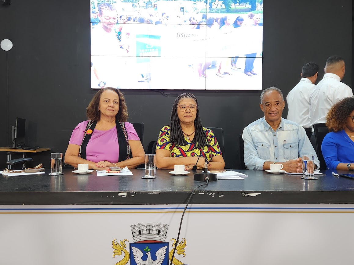 Compuseram também a mesa da sessão o coordenador da Amea, Eduardo Calliga; a assessora especial da Pessoa com Deficiência da Secretaria do Trabalho, Emprego, Renda e Esporte, Marleide Nogueira, representando o secretário Augusto Vasconcelos; a representante da Secretaria de Saúde do Estado da Bahia, Beatriz Teixeira; Everaldo Braga, presidente do Conselho Municipal de Saúde, e a atriz Elisleide Bonfim, representando coletivos antimanicomiais.