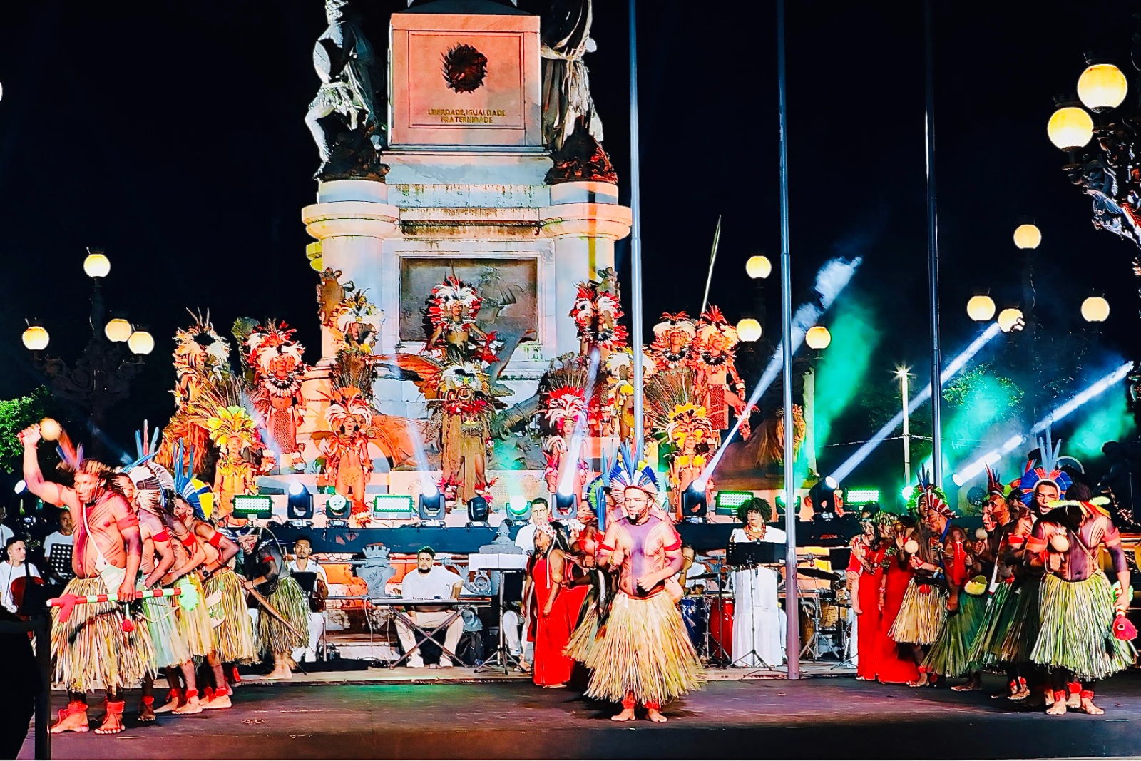 Conceito – Inspirado na obra da coreógrafa Lia Robatto, “Ao Pé do Caboclo” foi uma iniciativa idealizada pela Fundação Gregório de Mattos (FGM) e reúne mais de 150 artistas, entre dançarinos do Balé Folclórico e músicos de uma orquestra. Também participam integrantes da etnia indígena Xukuru-Kariri, reforçando o caráter histórico e simbólico da encenação, apresentada aos pés do monumento ao Caboclo.