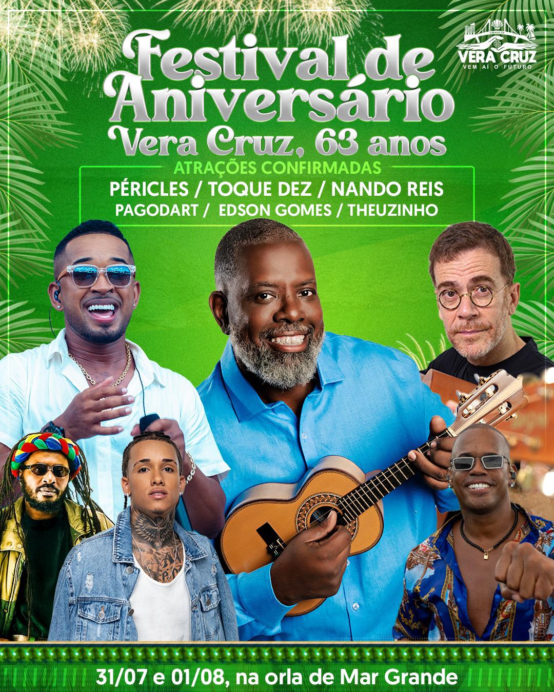 A cidade de Vera Cruz, localizada na Ilha de Itaparica, está em clima de festa! Em comemoração aos seus 63 anos de emancipação política, a prefeitura promove uma programação especial nos dias 31 de julho e 1º de agosto, com shows gratuitos na Orla de Mar Grande.