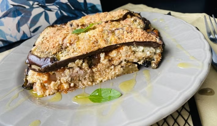 - 6.Em um recipiente retangular, faça camadas com o molho de tomate, as fatias de berinjela e o Recheio, finalize com uma camada de molho e polvilhe queijo ralado.