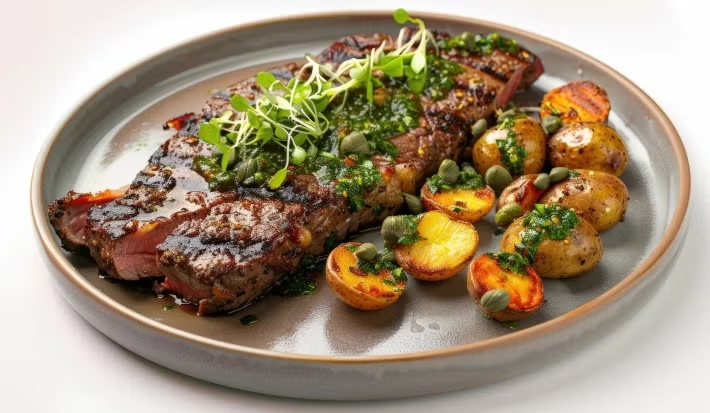 - 1.Em um recipiente refratário tempere a carne, dos dois lados, com azeite e o sachê de MAGGI Caldo de Carne.