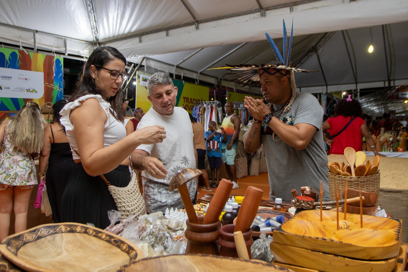 Nos 27 estandes territoriais, o público encontra a autenticidade da produção rural baiana expressa em alimentos, bebidas, artesanato, moda, flores, cosméticos e itens que representam identidade, ancestralidade e inovação. As duas praças gastronômicas também vêm aquecendo o evento e a economia local, com pratos tradicionais e novidades como o Fogo de Chão, além de opções como cuscuz com bode, galinha caipira, mariscos, tapioca, sorveteria, cachaçaria e choperia. Há ainda alternativas veganas, como o hambúrguer de carne de caju, e as tradicionais tendas Quilombola, Indígena e de Artesanato.