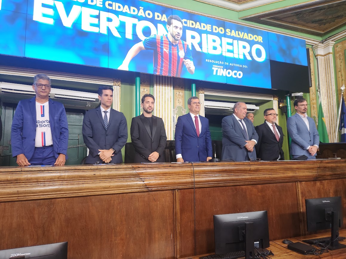 Bastante emocionado, Éverton Ribeiro agradeceu o reconhecimento e destacou a felicidade de se sentir cada vez mais conectado com a cidade e seu povo. Ao chegar ao local, foi recebido com carinho por fãs e amigos, posou para fotos e teve uma recepção especial com apresentações do Olodum e dos Filhos de Gandhy. Demonstrando espontaneidade e sintonia com a cultura baiana, o jogador até participou tocando tambor ao lado do Olodum.