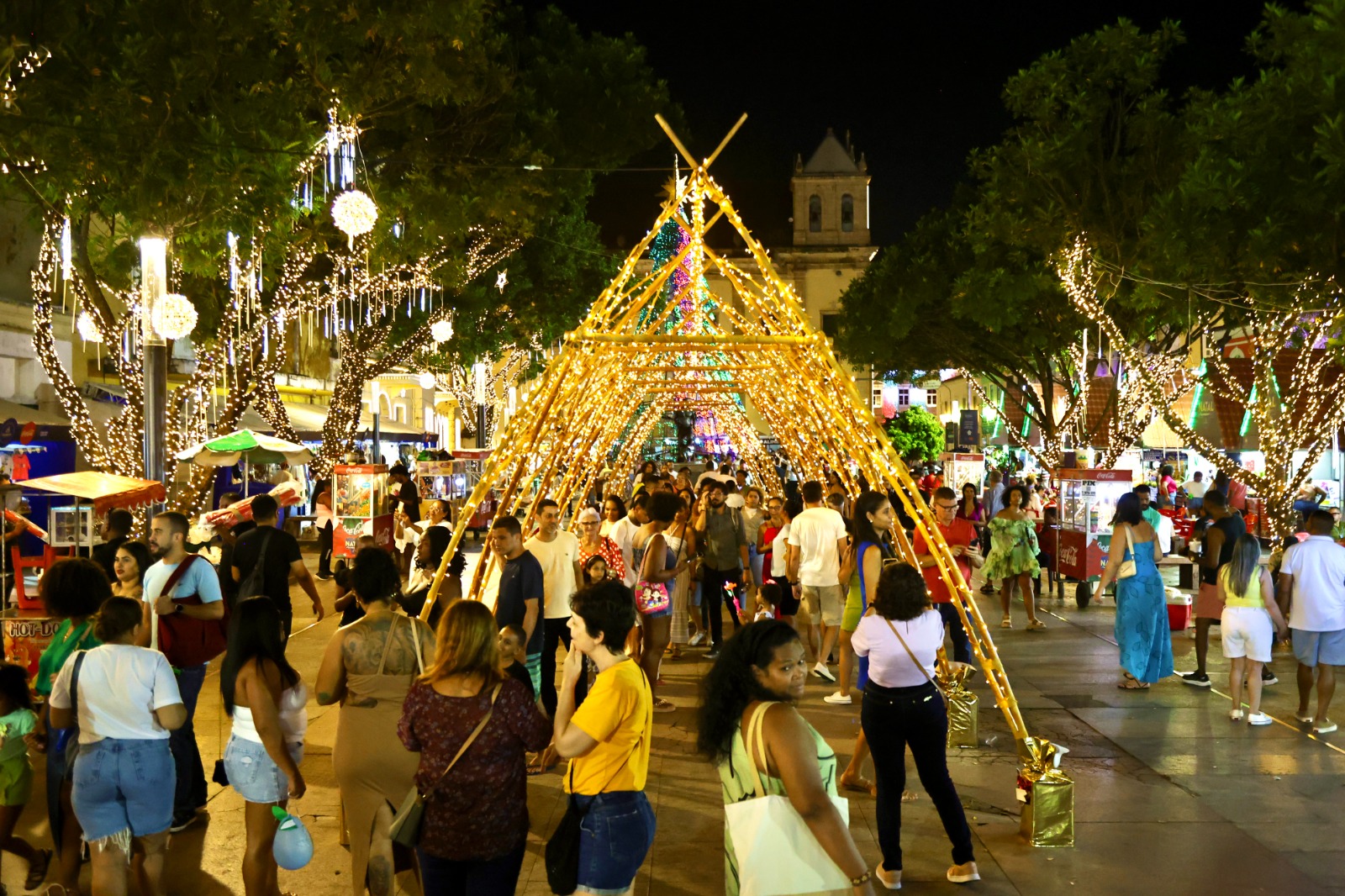Outro acesso bastante procurado é pela JJ Seabra, onde a tradicional Avenida Barroquinha também foi preparada para receber os visitantes. O local ganhou mais de 20 peças decorativas, instaladas para valorizar a região e criar o clima natalino já na chegada de quem segue rumo ao Centro Histórico. Segundo o diretor Ângelo Magalhães, “a proposta é integrar o território, reforçar o comércio local e ampliar a experiência de quem circula por toda a área”.
