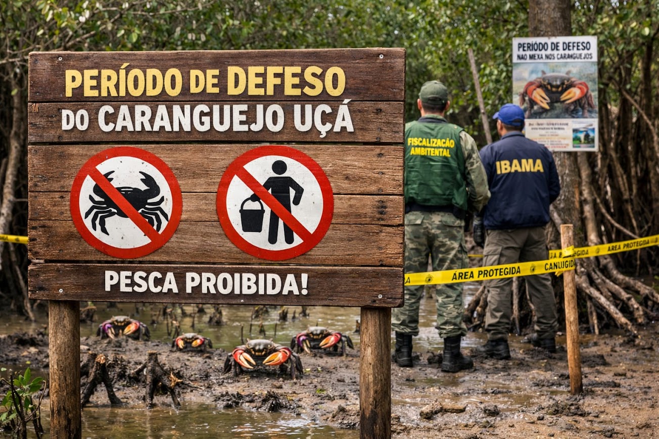 Você já pensou nisso? Que a pesca durante o período de defeso causa uma redução drástica, podendo levar até a extinção do caranguejo-uçá?