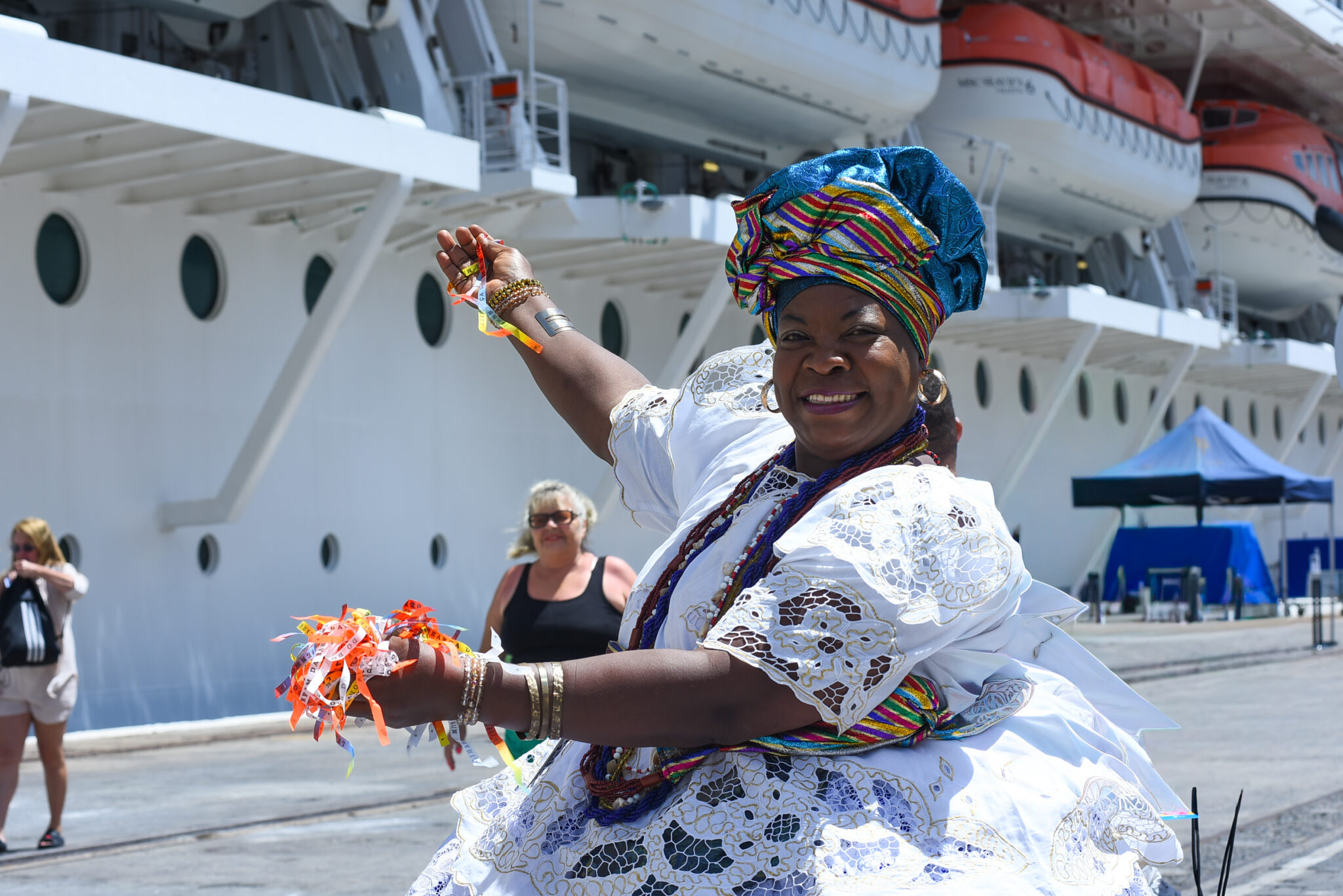 “Vi todos eles desembarcando ansiosos, recebidos com um receptivo bem carnavalesco, com danças, coreografias e pintura corporal. A programação da Prefeitura ajuda em todos os circuitos, incluindo o Batatinha, no Pelourinho. Temos equipes no Porto dando informações sobre horários e o que vai acontecer em cada circuito”, afirmou o diretor de Turismo da Secretaria de Cultura e Turismo (Secult), Gegê Magalhães.