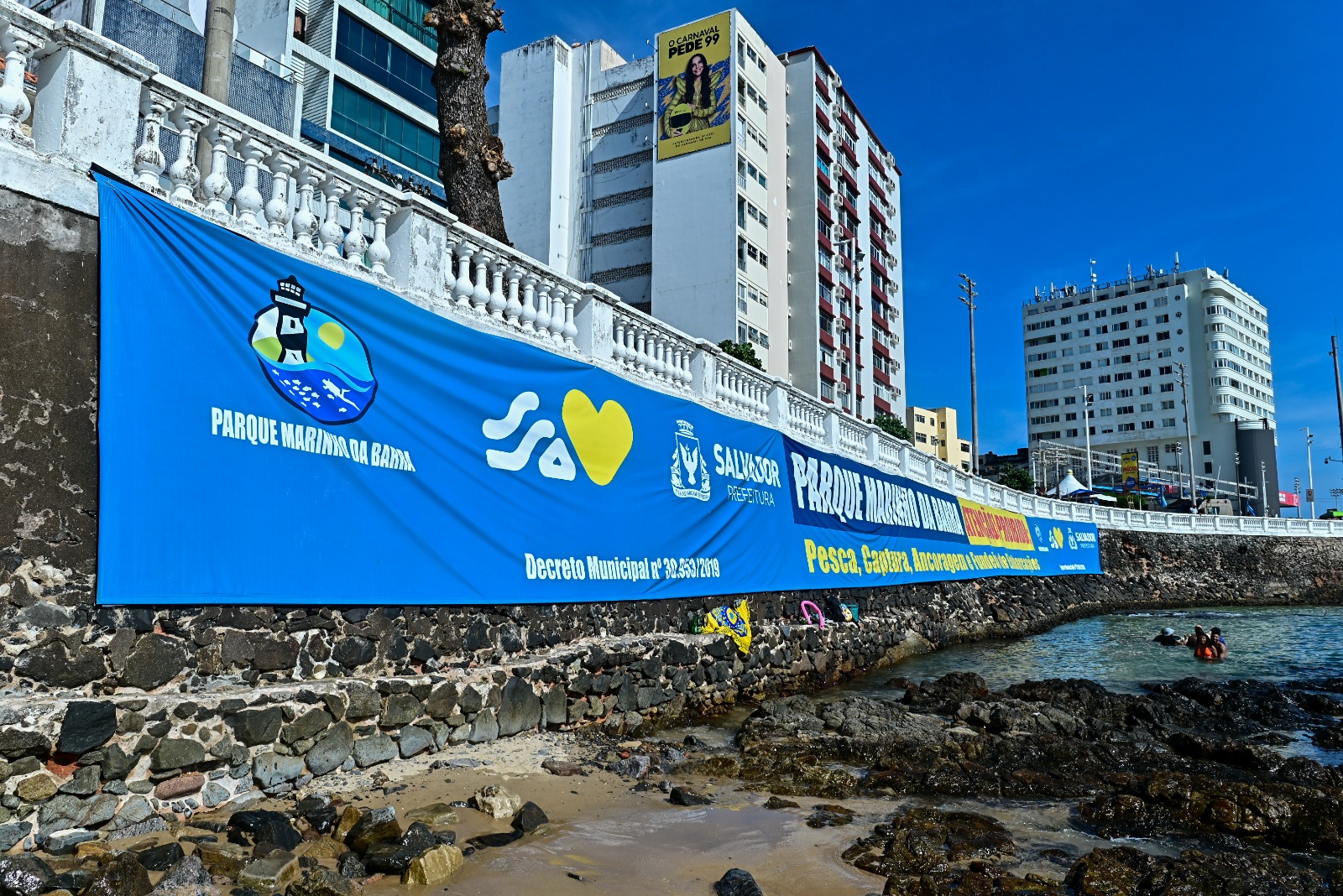 Além da fiscalização, a Prefeitura investiu em comunicação visual para ampliar o conhecimento da população e dos navegantes sobre as regras do parque. Uma faixa foi instalada na mureta da praia, e as boias de demarcação passaram a informar sobre as proibições de fundeio, pesca e descarte de lixo. “Toda a delimitação foi definida com participação da academia, da sociedade e da comunidade local. Durante o Carnaval, teremos apoio da Salvamar e da Capitania dos Portos para intensificar a fiscalização diretamente no mar”, conclui o secretário.