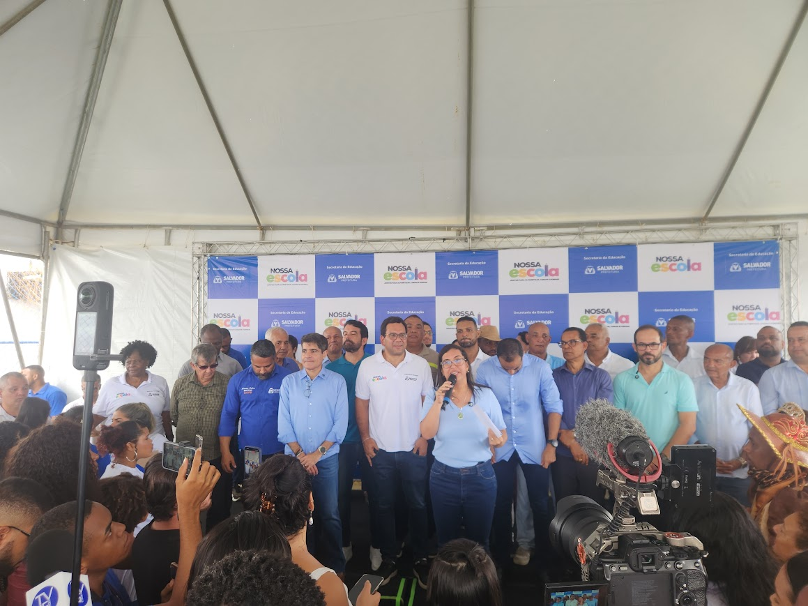 A Prefeitura de Salvador entregou nesta terça-feira (14) a nova Escola Municipal Almirante Ernesto de Mourão Sá, em Paripe. A unidade tem 28 salas de aula climatizadas, com capacidade para atender até 1.190 estudantes em tempo integral, segundo a Secretaria Municipal de Educação (Smed). Participaram da solenidade o prefeito Bruno Reis, a vice-prefeita Ana Paula Matos e o secretário de Educação, Thiago Dantas, entre outras autoridades municipais.